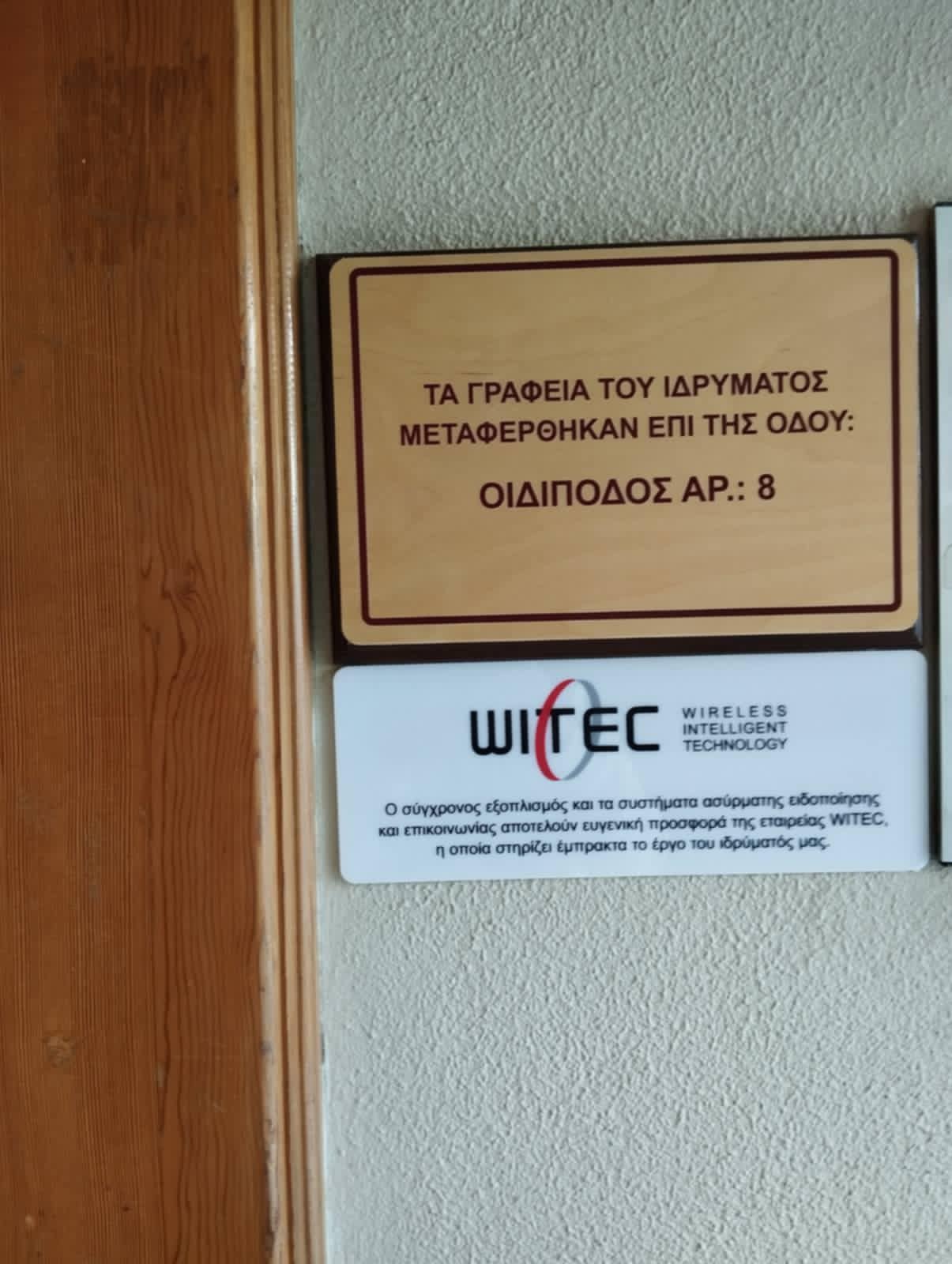 Η υλοποίηση του εξοπλισμού και των συστημάτων ασύρματης ειδοποίησης και επικοινωνίας, πραγματοποιήθηκε με την πολύτιμη συμβολή της εταιρείας Witec μέσω ευγενικής χορηγίας.
